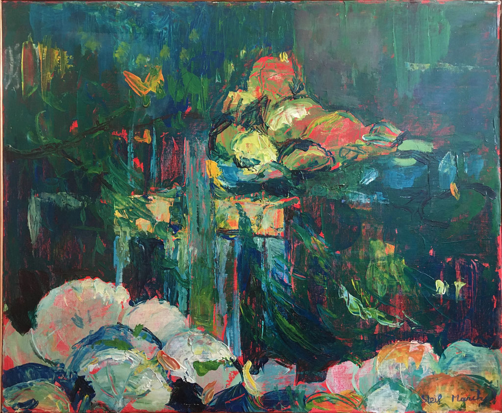 Peinture Acrylique sur Toile-L 73 cm X H 60 cm Titre Bassin Arts Déco-Strasbourg Année Env. 1989 Artiste Danielle STEIL MARCHAL