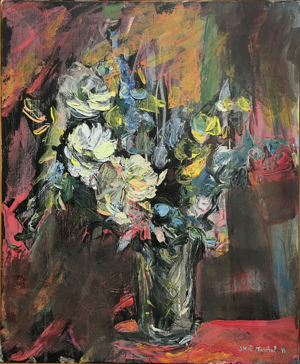 Peinture Acrylique sur Toile - L 61cm X H 73.5 cm Titre - Bouquet fleurs de champs - Année 1989 Artiste Danielle STEIL MARCHAL