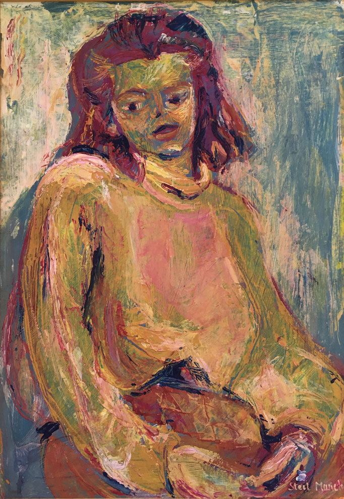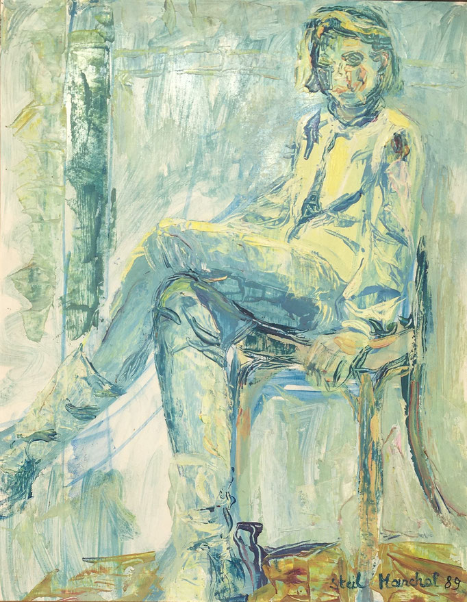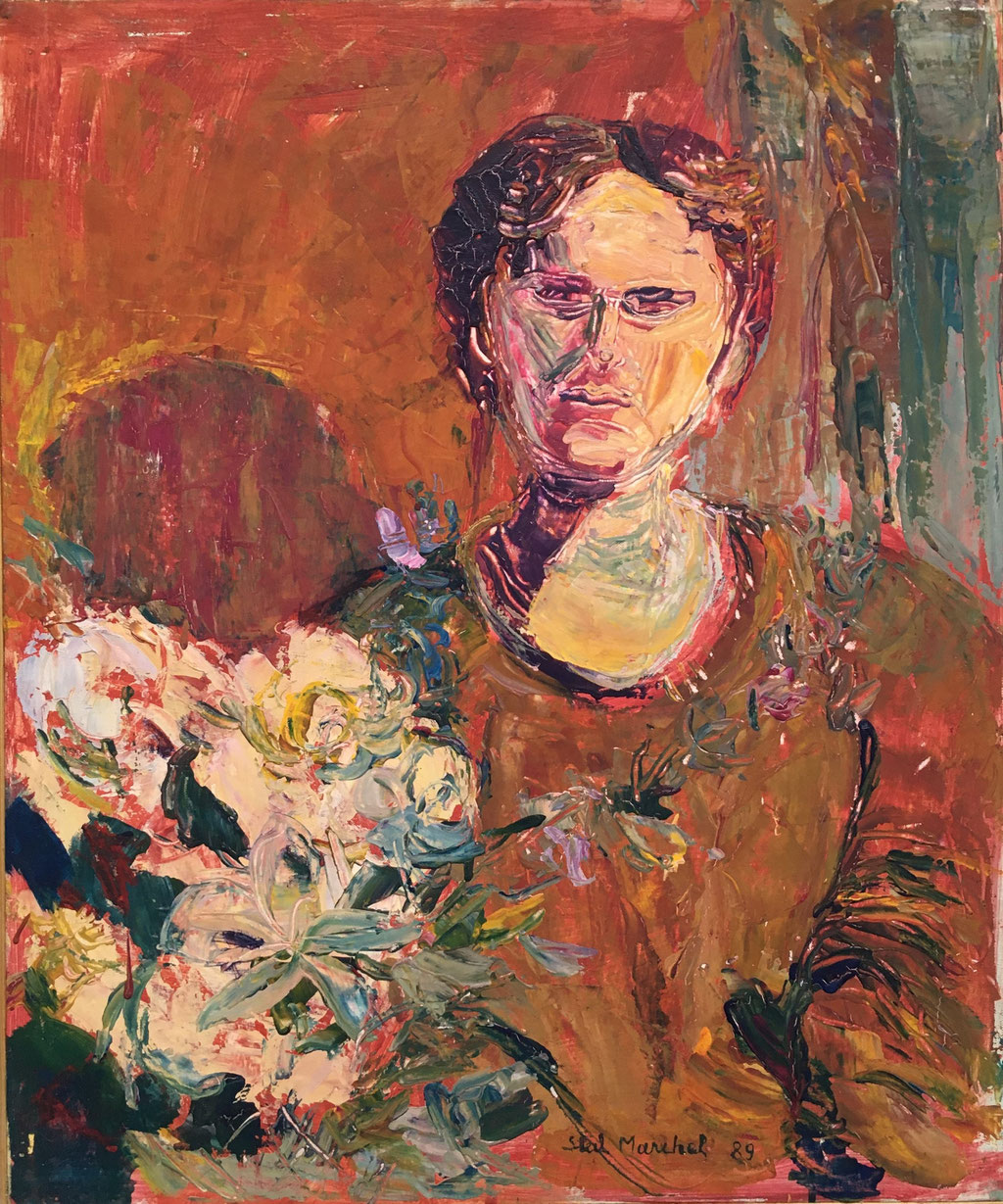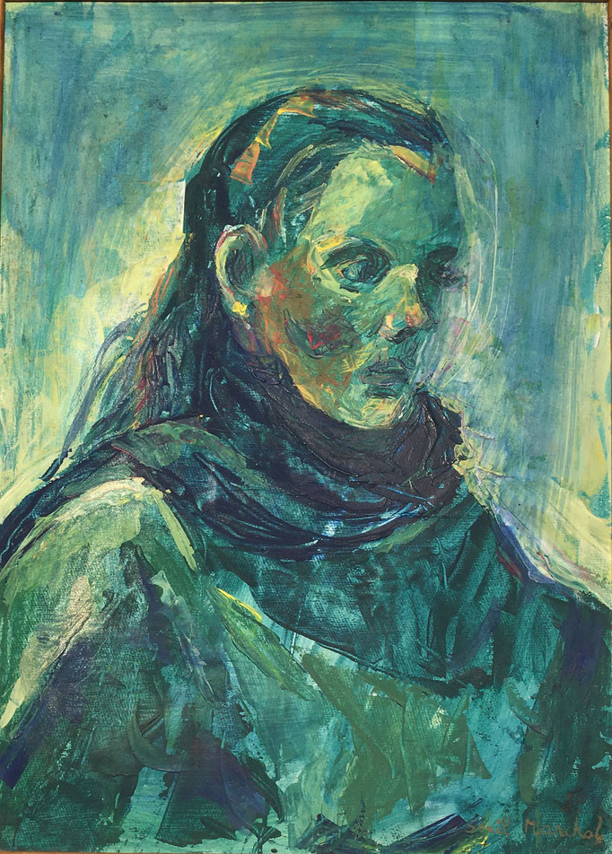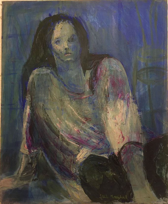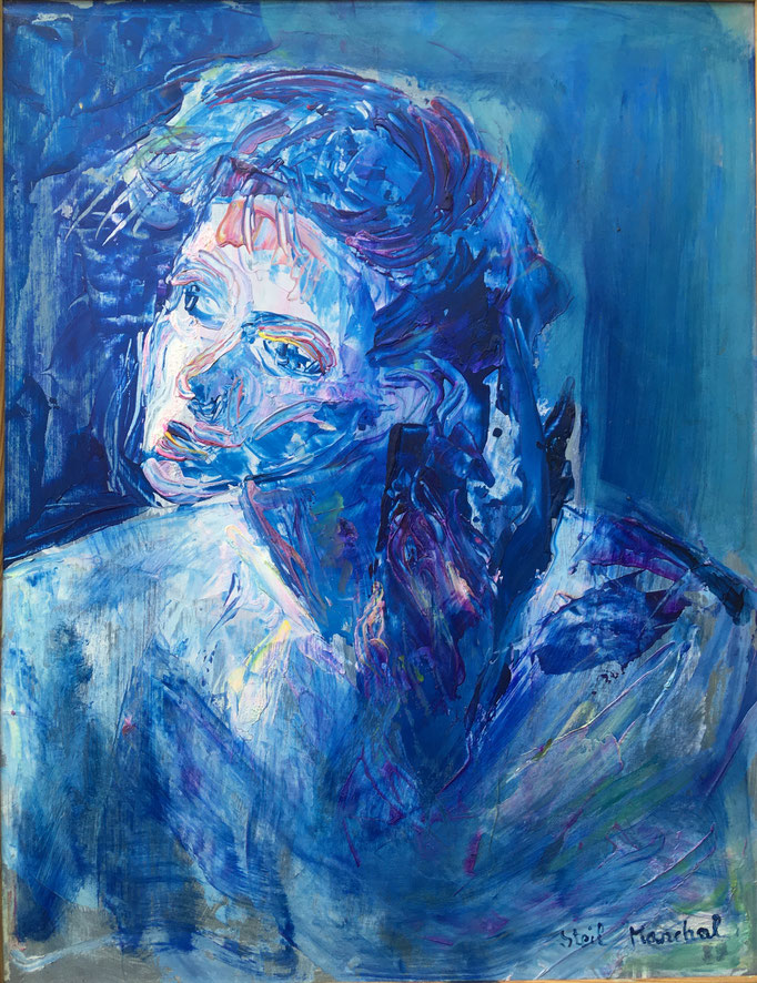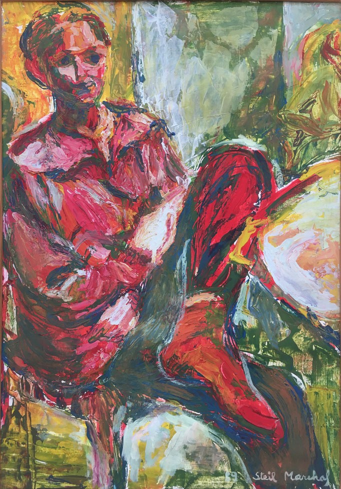 Peinture Acrylique sur Isorel - L50 cm X H 65 cm Titre Julie - Année 1989 Artiste Danielle STEIL MARCHAL