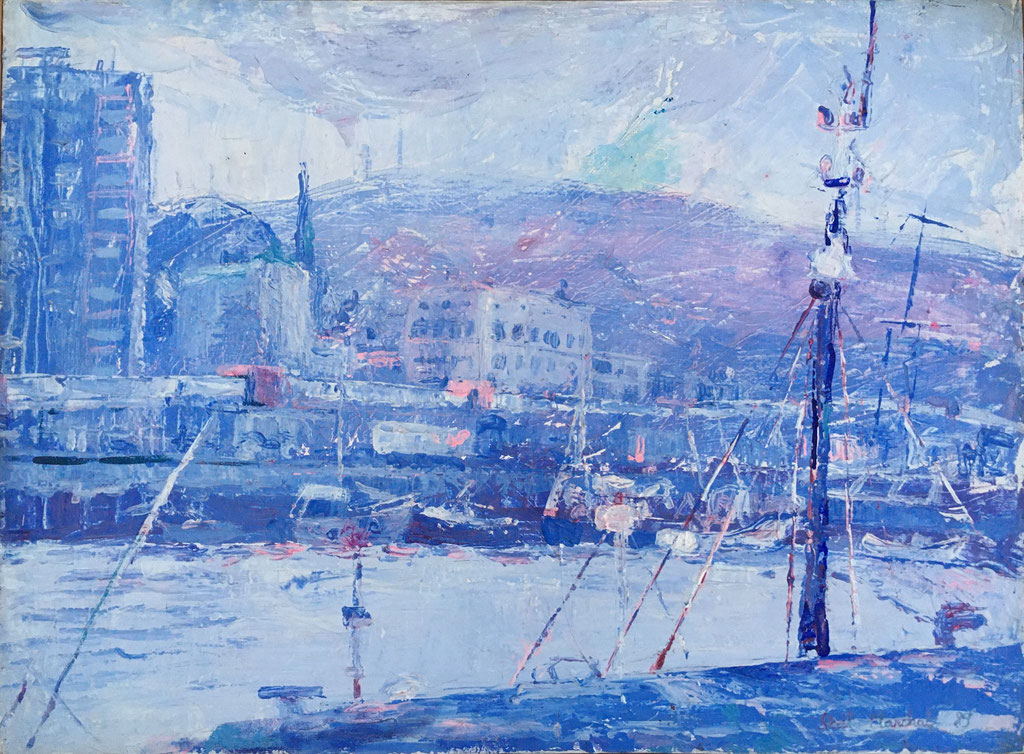 Peinture Acrylique sur Toile - L 80,5 cm X H 59,5 cm Titre Port de Boulogne - Année 1989 Artiste Danielle STEIL MARCHAL