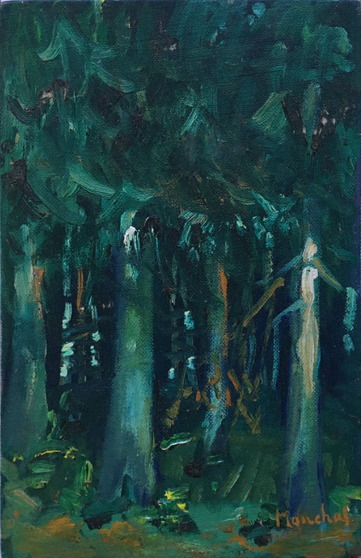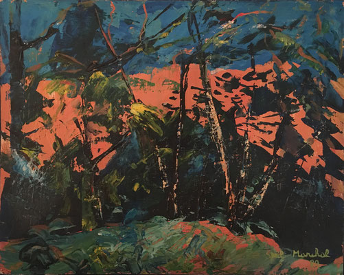 1989 Peinture Acrylique sur Isorel entoilé - L 18,5cm X H 29 cm Titre Forêt Vosgienne - Année Env. 1989 Artiste Danielle STEIL MARCHAL