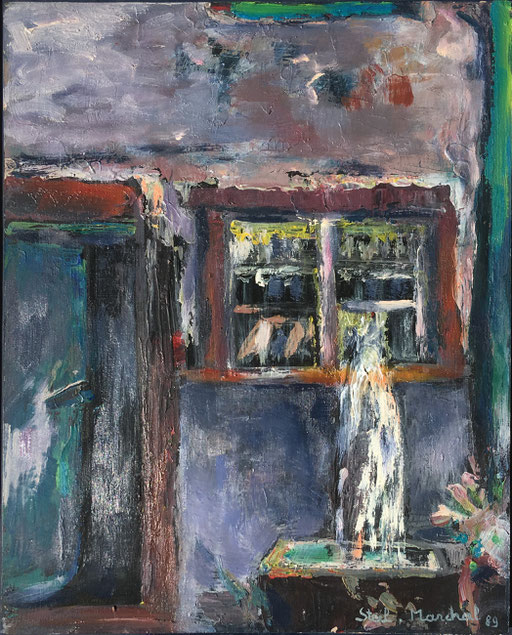 1989-Peinture Acrylique sur Isorel-L 50 cm X H 70 cm Titre Arts Décoratifs Strasbourg ( Modèle) -Année Env. 1989 Artiste Danielle STEIL MARCHAL