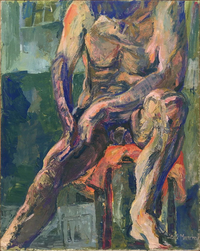 Peinture Acrylique sur Toile - L74.5cm X H93.5 cm Titre Nu (Académie Grande Chaumière- Paris ) - Année Env. 1989 Artiste Danielle STEIL MARCHAL