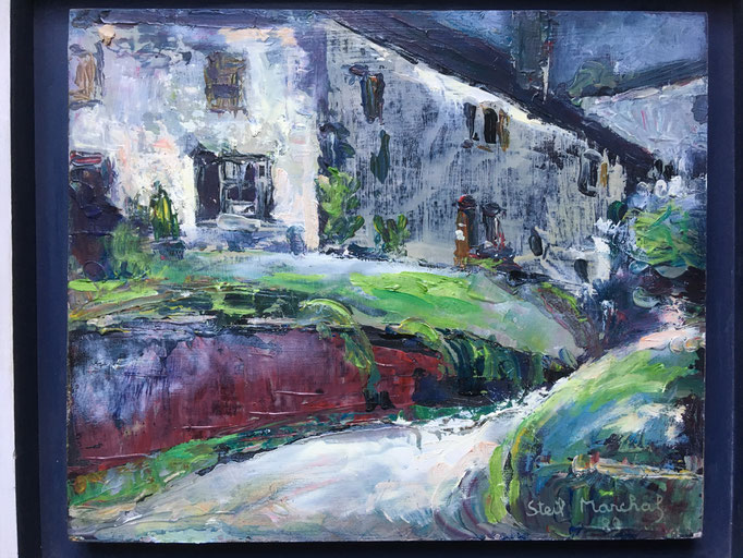 Peinture Acrylique sur Isorel - L cm X H cm Titre Ferme vosgienne - Année 1989 Artiste Danielle STEIL MARCHAL ( C0AL4)
