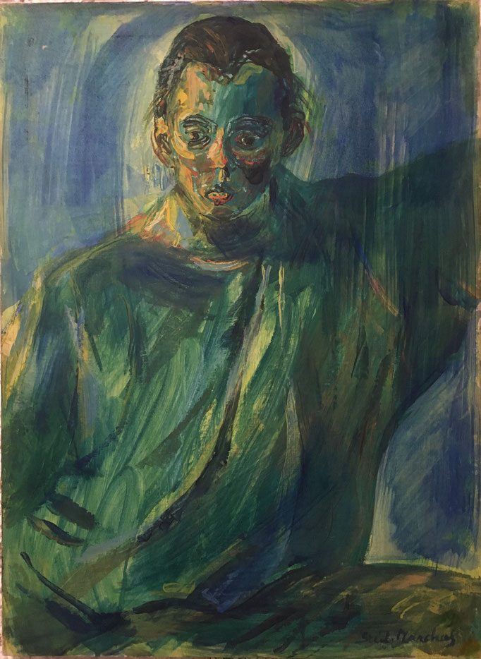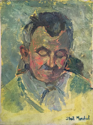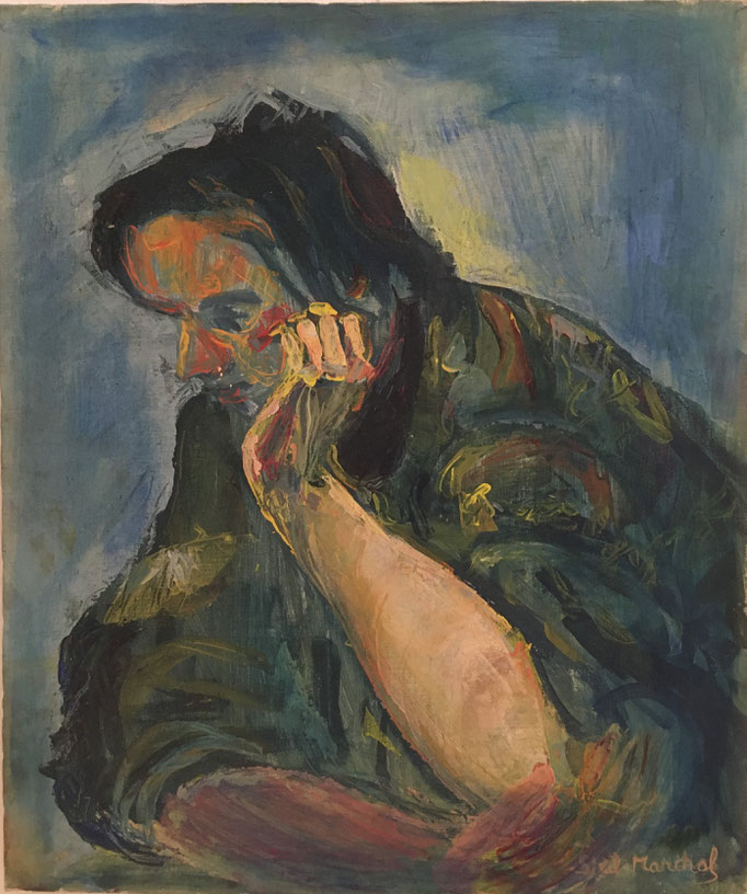 Peinture Acrylique sur carton entoilé L23 cm x H30 cm Titre Roger- Année 1989 Artiste Danielle STEIL MARCHAL