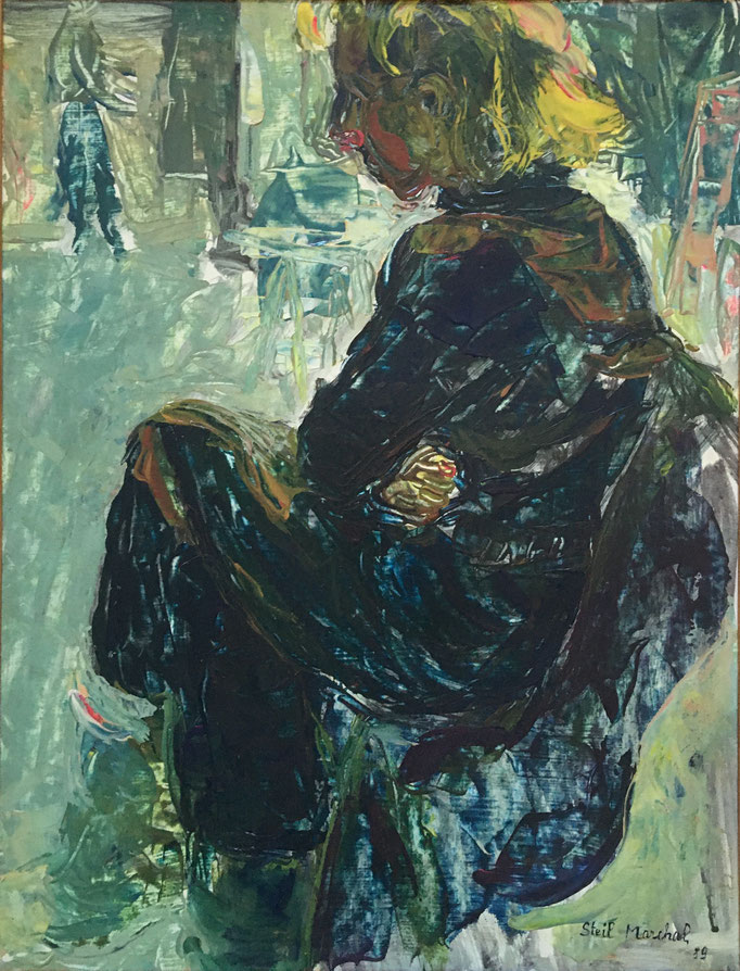 Peinture Acrylique sur Toile-L 60 cmX H 73 cm Titre Modèle-Arts Déco- Strasbourg Année 1989 Artiste Danielle STEIL MARCHAL